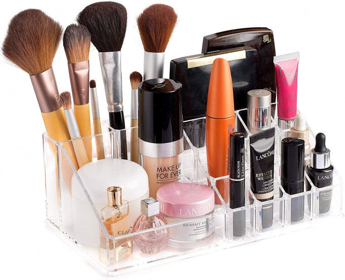Boîte de rangement pratique: ce présentoir organisé vous aide à trier et mettre de l’ordre dans vos produits cosmétiques ou ustensiles beauté. Vous avez donc tous vos pinceaux de maquillage, vernis à ongles, mascara réunis dans cette tour à tiroirs et à portée de main. Vos produits étant rangés, il vous est ainsi possible de localiser rapidement les ustensiles ou produits beautés recherchés. Ainsi, pinceaux, rouge à lèvres, vernis à ongles et mascara sont toujours à portée de main. Se prête aussi idéalement comme boîte à bijoux: vous pouvez placer vos boucles d’oreilles, bagues, colliers ou autres bijoux aux côtés de vos produits maquillage. Les deux tiroirs offrent assez d’espace de rangement. Vitrine pour maquillage et bijoux: entreposés dans cette jolie boîte transparente, vos bijoux et produits make up sont ainsi toujours visibles. Un présentoir concentrant ainsi les luninosités scintillantes et notes colorées de vos bijoux ou produits beauté: de quoi se réjouir de s’apprêter! Organisateur avec de nombreux compartiments: le coffret de rangement – 16 compartiments et 2 tiroirs – offre suffisamment de place pour tous les ustensiles de maquillage et bijoux préférés. Matériau durable: l’organisateur cosmétique mesure 37,5 x 24 x 17 cm et est en acrylique. Ce plastique transparent est particulièrement robuste et solide, même en présence d’humidité.